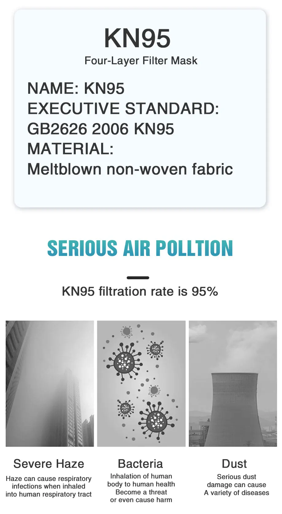 100 pièces KN95 masque anti-poussière et anti-buée 5 couches respirant avec 95% particules filtrées KN95 masquesBuy Now On Aliexpress