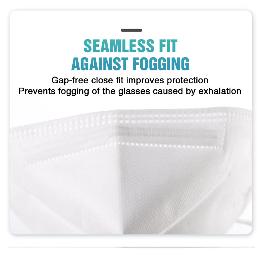 100 pièces KN95 masque anti-poussière et anti-buée 5 couches respirant avec 95% particules filtrées KN95 masques