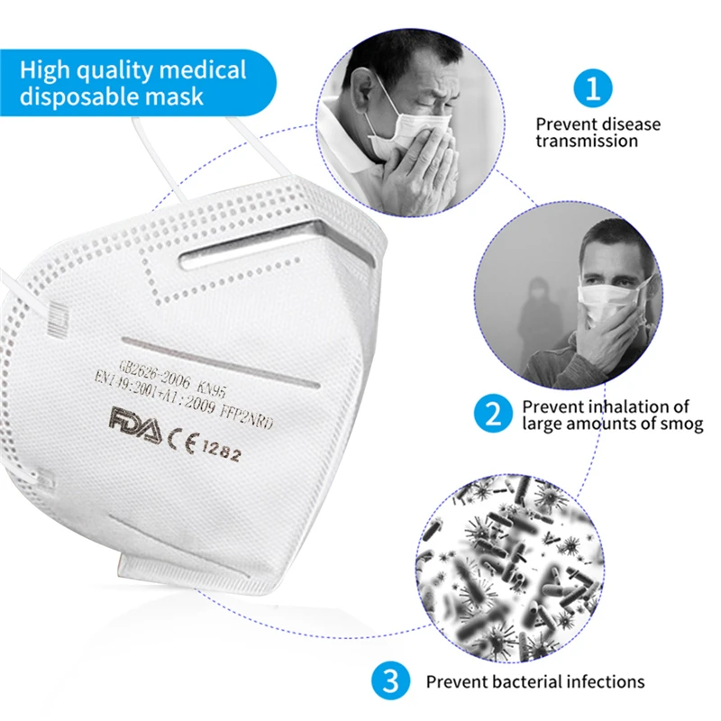 50 pièces Anti-poussière grippe Anti-Infection Ffp2 masque facial particules respirateur poussière bouche masque résistant aux bactéries sécurité FFP2 FFP3 masques