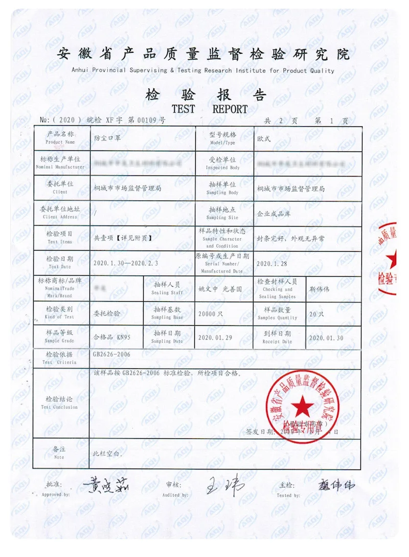 Original 100 pièces KN95 Anti-poussière Anti-buée et respirant masques N95 masque 95% caractéristiques de Filtration