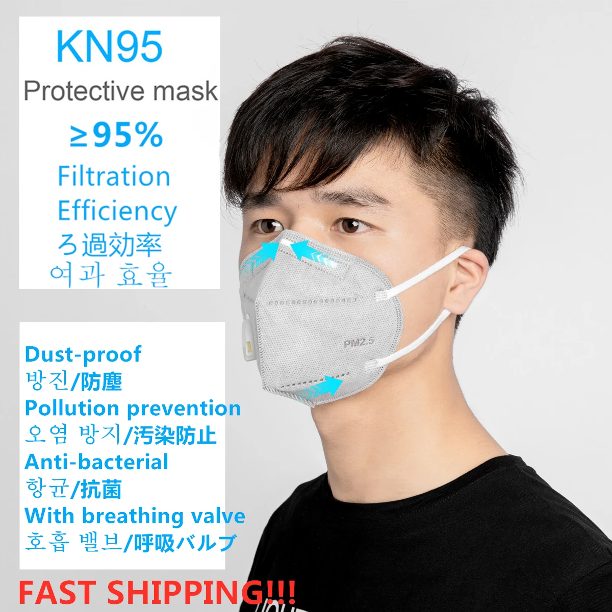 100 pièces KN95 masque blanc avec valve carrée visage bouche masque 95% propriétés de Filtration livraison rapide livraison directe