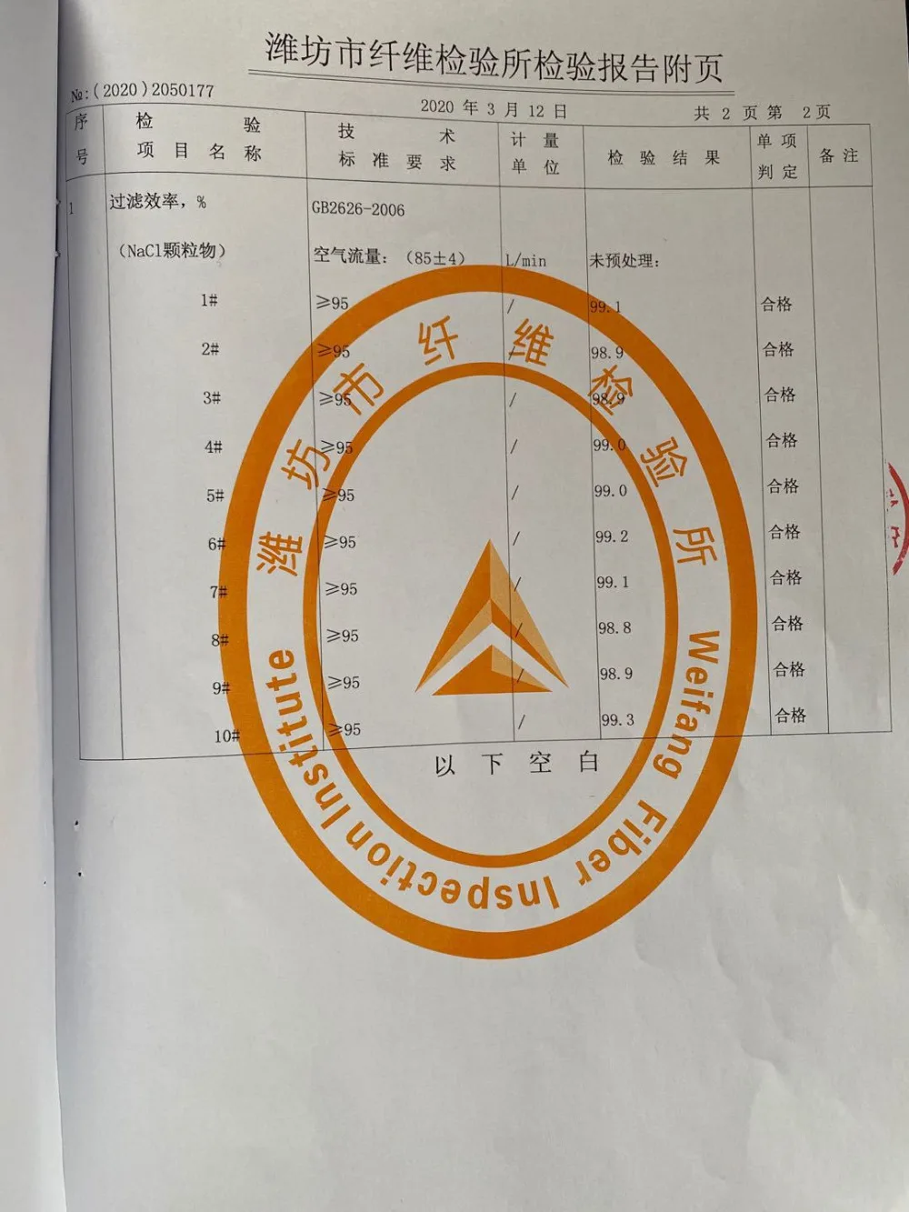 4. Taux de filtrage: ≥ 95% (particules de 0,075 μm)